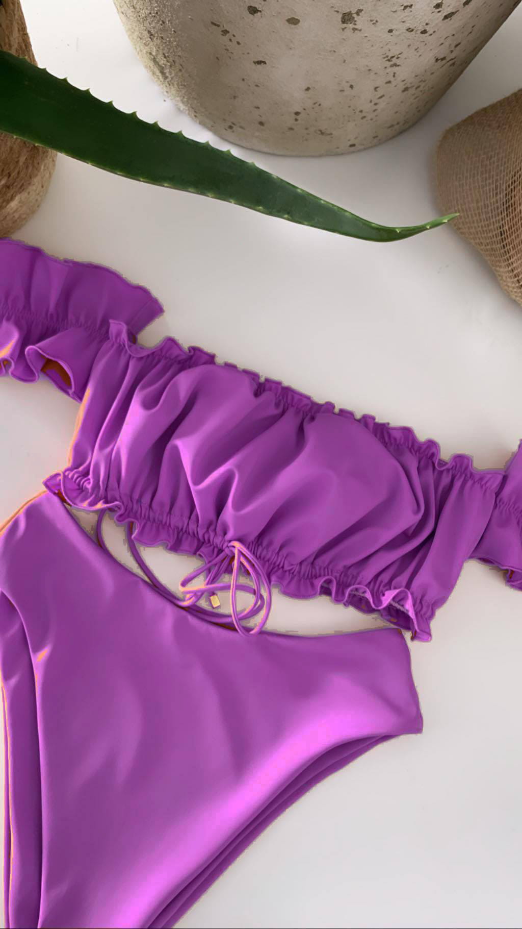 - Przymarszczenie na górze jak i na dole topu powoduje, że świetnie się w nim „mieści” całkiem spory biust, a ten mniejszy wśród tylu falbanek zyskuje na objętości.