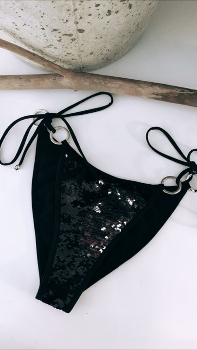 Dla Twojego komfortu całość jest obszyta lamówką aby cekiny nie drażniły skóry. Tył majtek jest zabudowany.