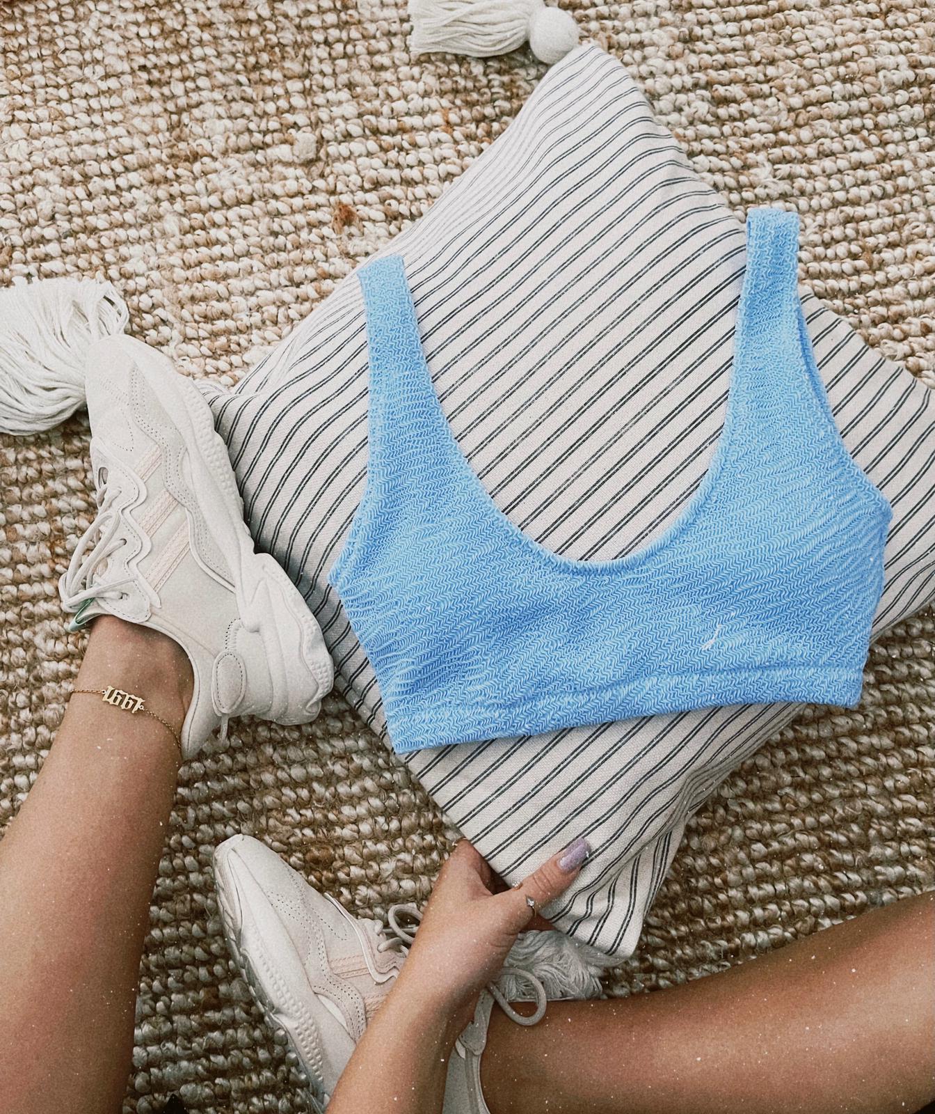 Baaaardzo komfortowy top. Figi mega wygodne. Materiał mięciutki i miły - ma fajna strukurę, takie marszczenia.