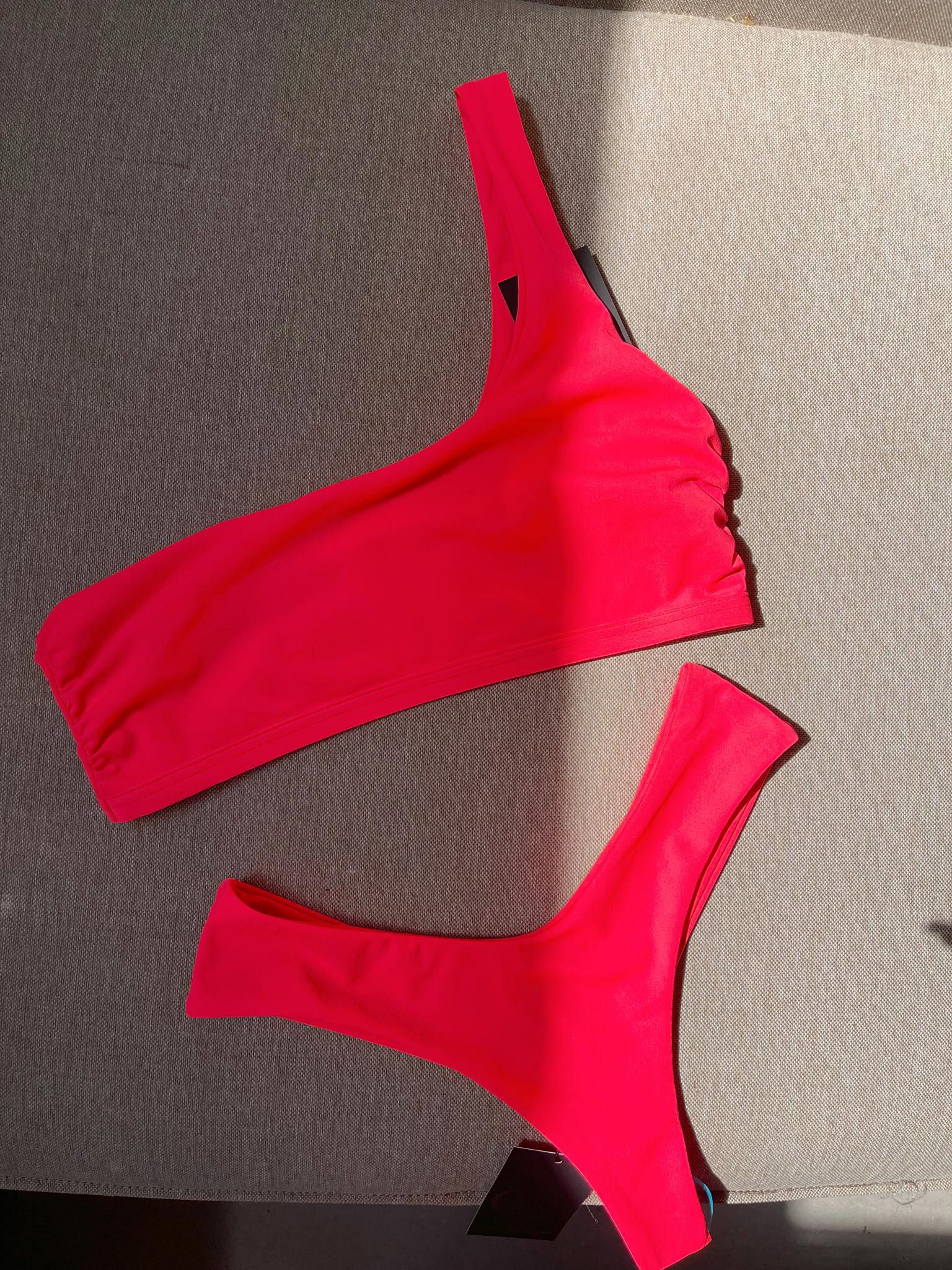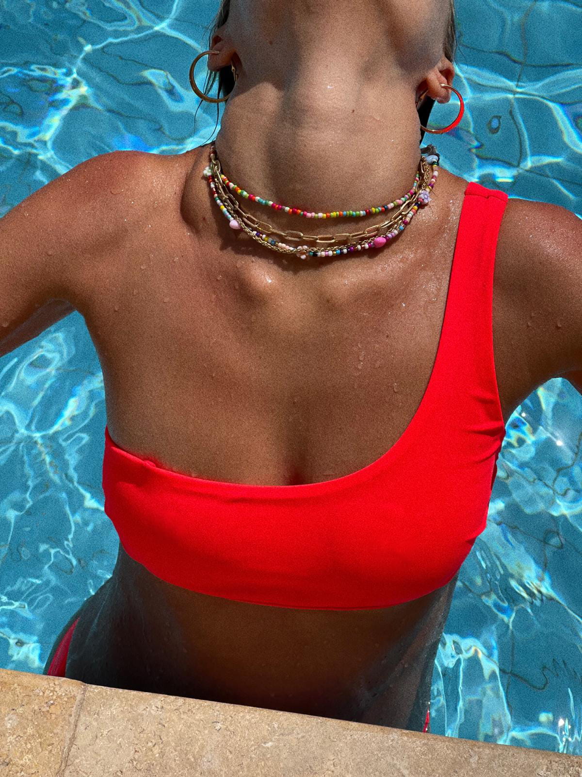 Majteczki o bardzo ciekawym „trójkątnym” kształcie. Boczki naturalnie układają się wysoko na biodrach, dzięki czemu mocno wydłużają nogi. Tył jest tak wyprofilowany, aby ładnie podkreślać pupę. Dla Twojego komfortu majteczki uszyłyśmy z podwójnej warstwy materiału.