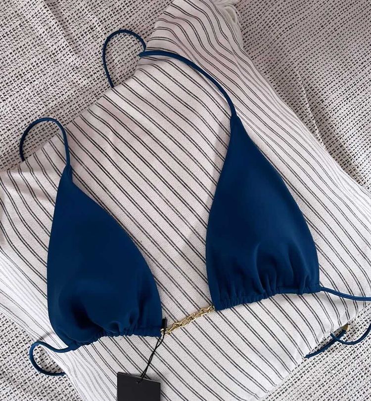 Navy Blue Star to elegancja i klasyka w jednym. Aby nadać blasku z pozoru klasycznemu staniczkowi umieściłyśmy między miseczkami biżuteryjny łańcuszek (nikiel free). Trójkątne miseczki staniczka ładnie otulają biust. W zależności od tego czy chcesz odsłonić więcej ciałka czy może akurat chcesz się bardziej zasłonić sama możesz dowolnie regulować marszczenie miseczki pod biustem czyli jej szerokość. Wewnętrzna wkładka ładnie modeluje biust. Jeśli jednak czujesz się swobodnie bez niej to możesz ją bardzo łatwo wyjąć. Wiązania na plecach i na szyi dają pełną swobodę regulacji.