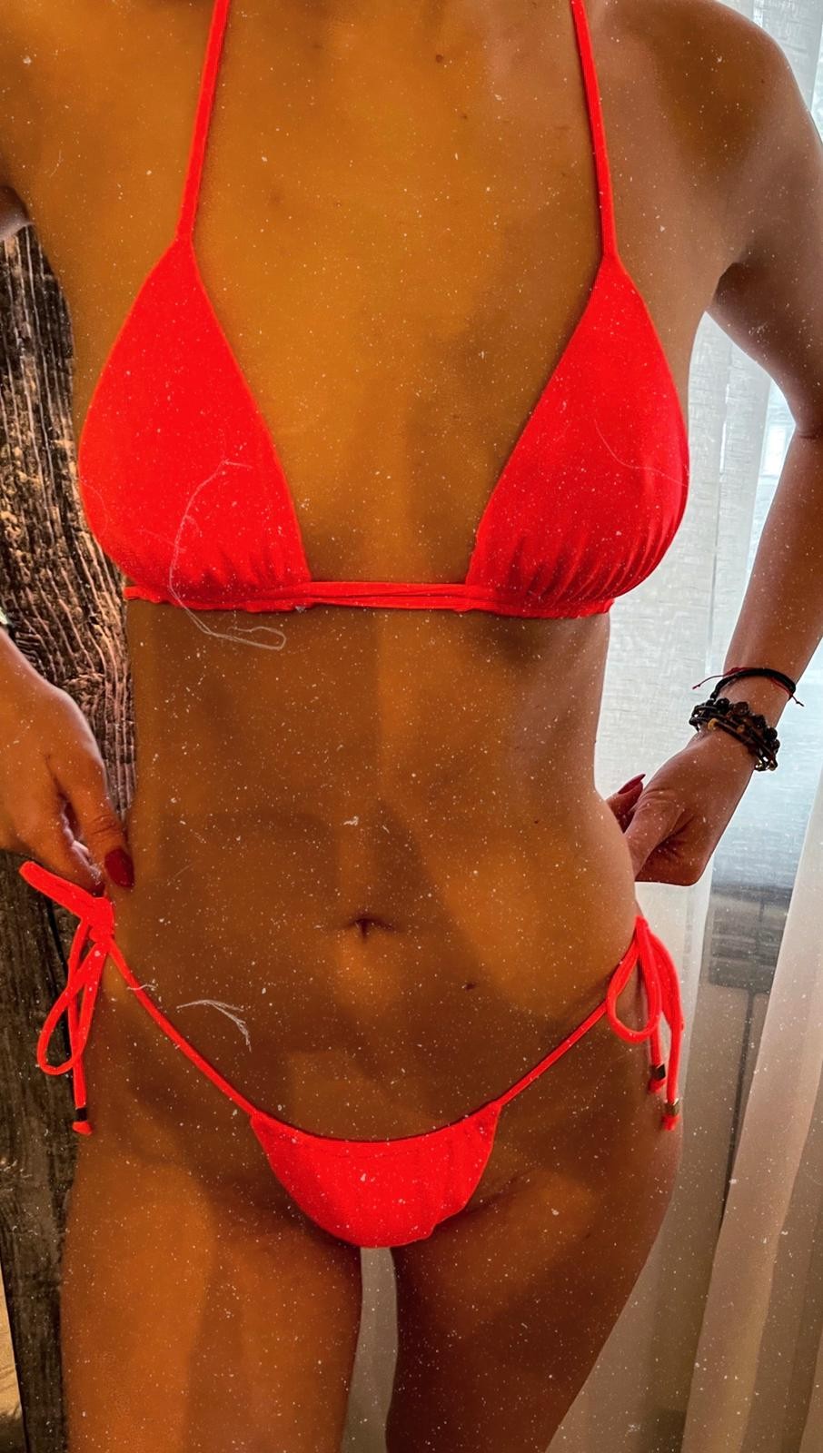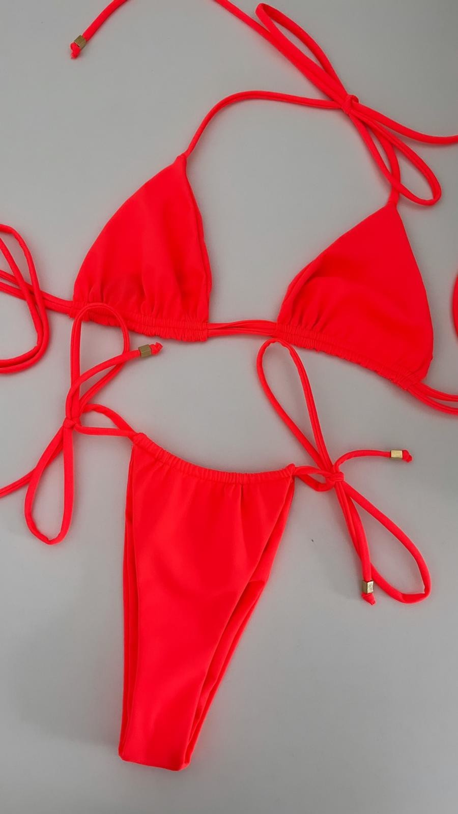 Bikini idealne do opalania. Na dole trójkątnej miseczki jest podwójny tunel, który pozwoli Ci wyregulować szerokość miseczki od standardowej obejmującej cała pierś, aż do bardzo wąziutkiej zasłaniającej tylko to co konieczne. Staniczek wiązany jest z tyłu oraz na szyi. Chociaż uważamy, że to bikini świetnie wygląda bez usztywnianej miseczki to dla tych, które maja inne zdanie od wewnętrznej strony wszyłyśmy kieszonkę na wkładkę.