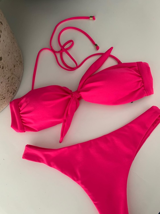 Model ten to idealne rozwiązanie dla amatorek opalania. Góra bikini wykonana w stylu ‘bandaża’ z odpinanymi ramiączkami, wiązaniem między piersiami, pozwoli wam uzyskać idealną opaleniznę bez śladów na ramionach.