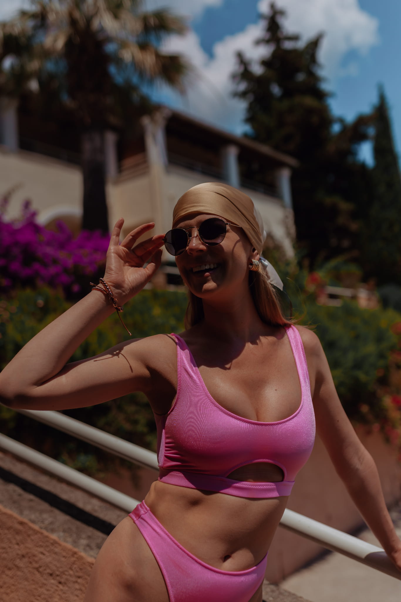 GLOSSY BABY PINK SUNSET TOP BIKINI