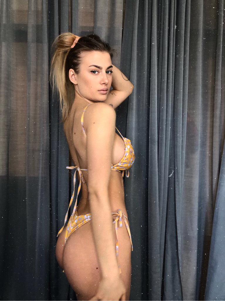 Bardzo wdzięczny staniczek bikini. Jego główna ozdoba to mocne przymarszczania z falbanką na górze i na dole. Obwód możesz regulować na 2 sposoby: ozdobnym wiązaniem z przodu lub wiązaniem na plecach. Wiązanie na plecach ma też drugą funkcję – regulację długości ramiączek. Jak to zrobić? Wystarczy pociągnąć sznurek wychodzący z tunelu, aż do momentu uzyskania żądanej długości ramiączka. Wiemy, ze brzmi to skomplikowanie, ale w praktyce jest banalnie proste.