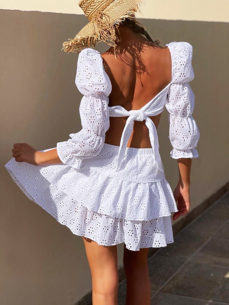 Przedstawiamy Wam nasze nowe koronkowe cudeńko – komplet w stylu boho. Santorini to świetny pomysł na stylizację w upalny dzień, gdyż całość jest wykonana z bawełnianej, przewiewnej koronki.