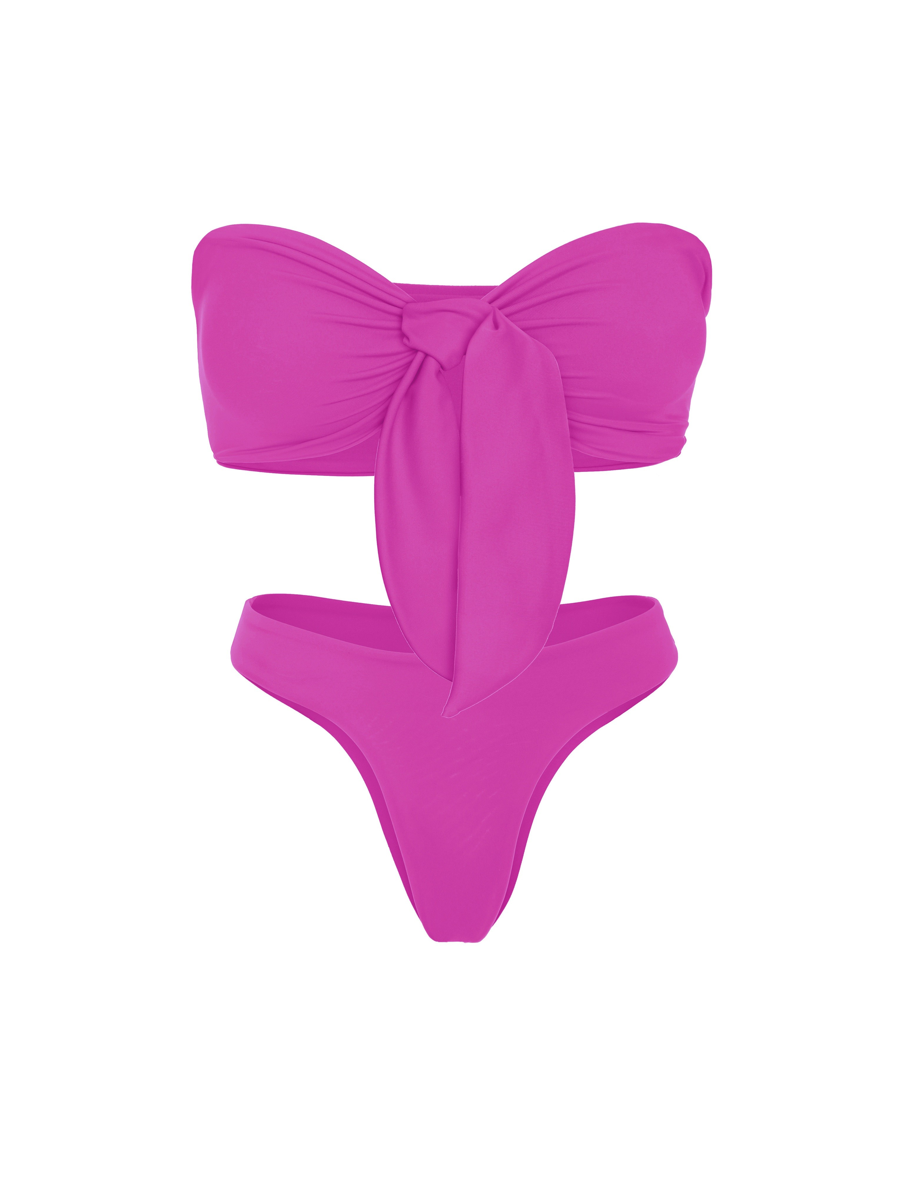 Model ten to idealne rozwiązanie dla amatorek opalania. Góra bikini wykonana w stylu ‘bandaża’ z odpinanymi ramiączkami, wiązaniem między piersiami, pozwoli wam uzyskać idealną opaleniznę bez śladów na ramionach.