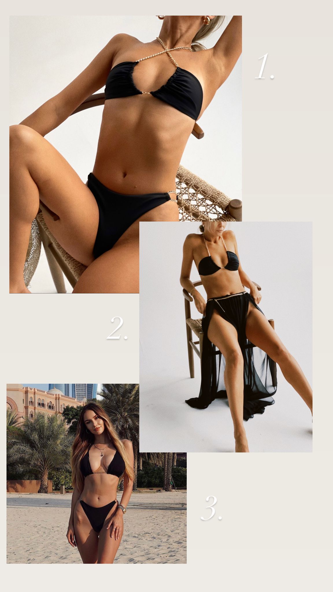 Collar to nasz kolejny pomysł na wykorzystanie biżuteryjnych łańcuszków nikiel free w modzie plażowej. Trójkątny staniczek przymarszczony na dekolcie zapinasz na szyi za pomocą karabińczyka. Możesz też przed zapięciem skrzyżować łańcuszek aby dekolt był bardziej ozdobny. Staniczek ma wyjmowane wkładki, wiec sama zdecydujesz czy chcesz je zostawić czy wyjąć. Zarówno rozstaw miseczek jak i obwód pod biustem jest w pełni regulowany. Niektóre z Was wpadły na pomysł aby staniczek zakładać na odwrót, dzięki czemu łańcuszek tworzy ozdobę zapinaną z przodu na brzuchu.