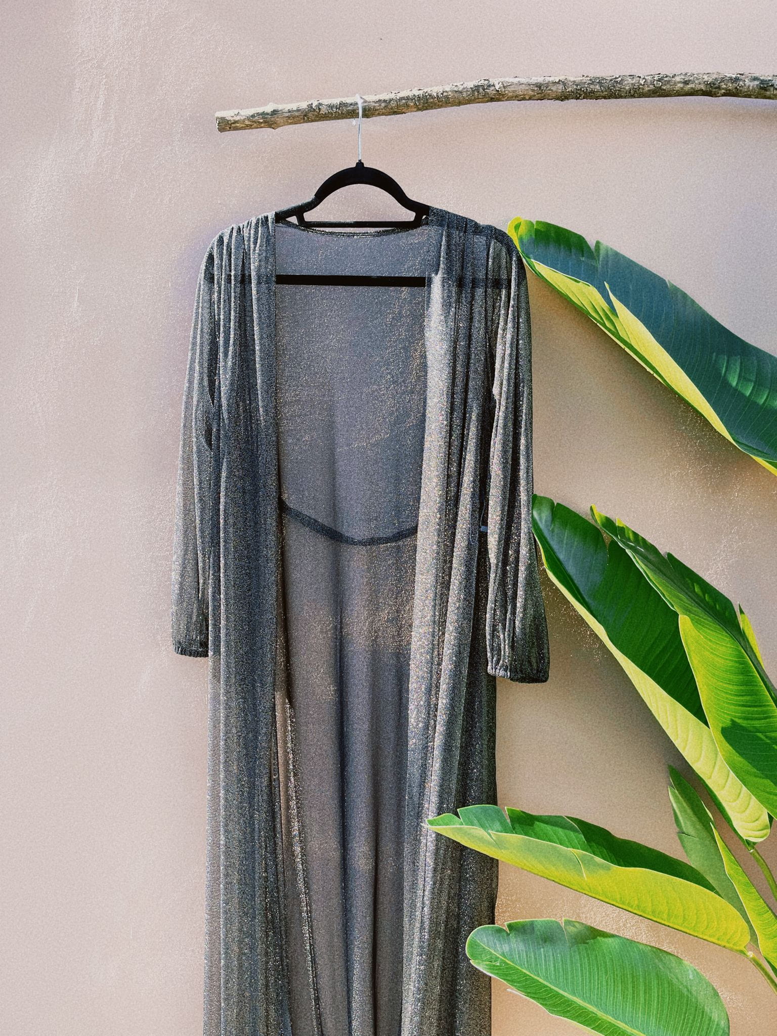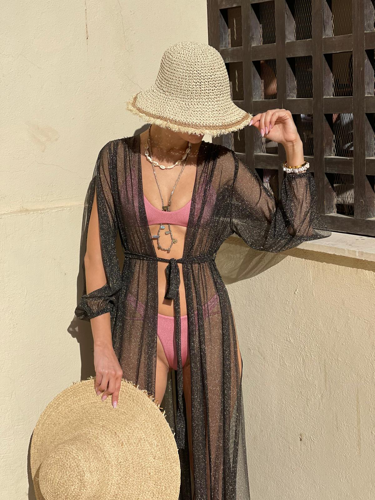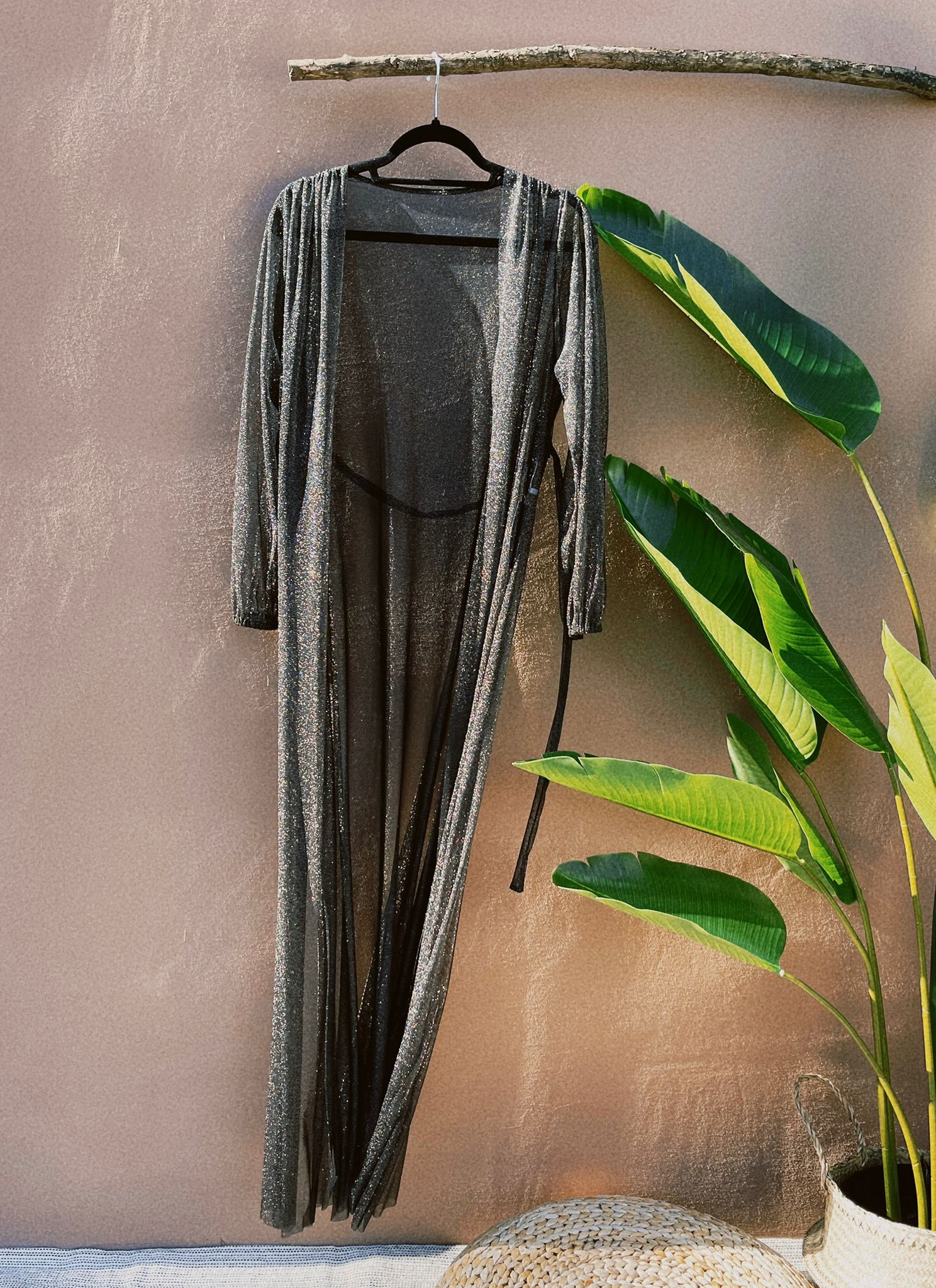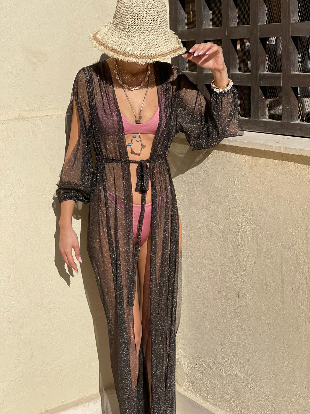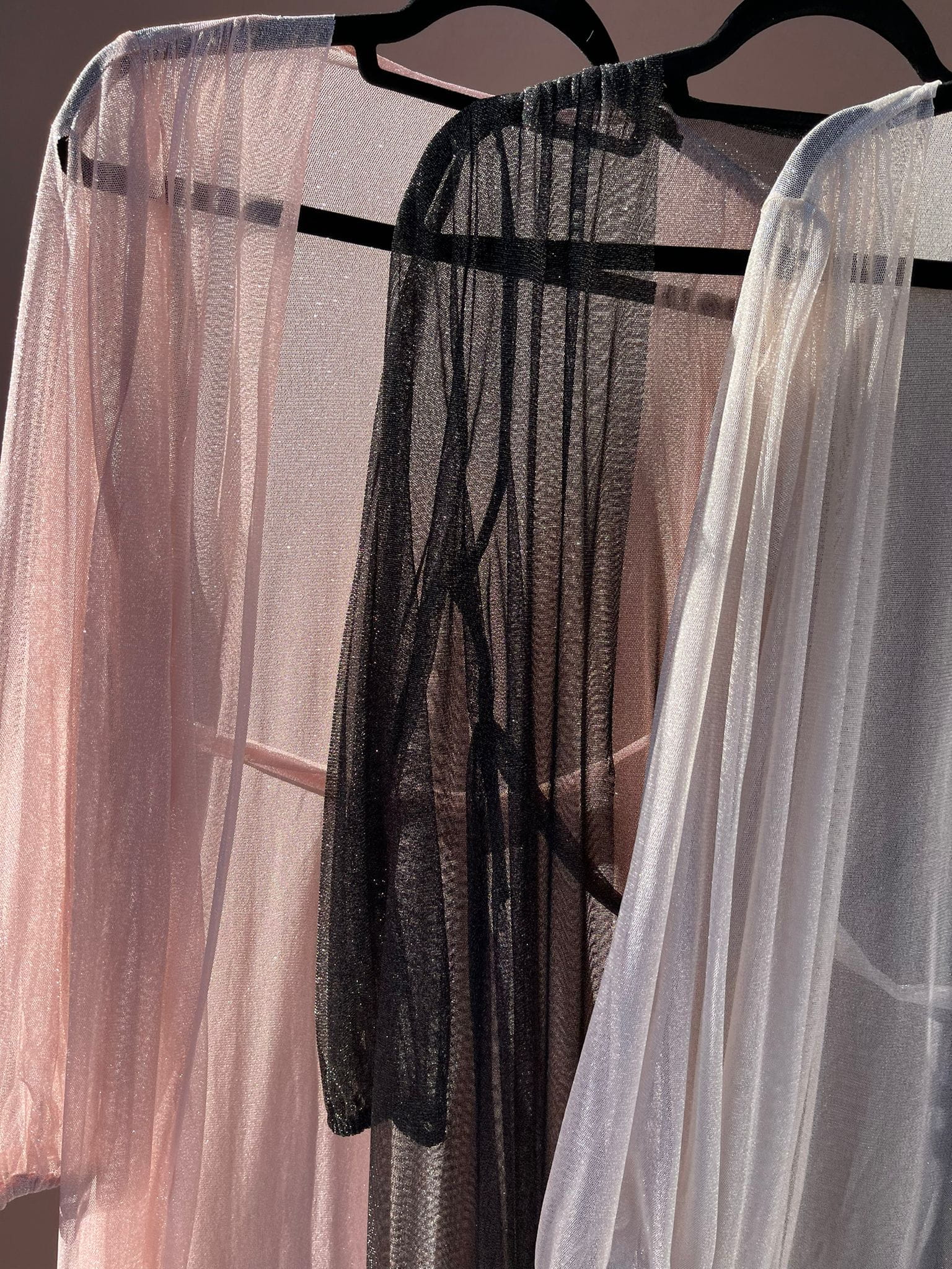 Ten szlafroczek- mgiełka pięknie się mieni w słońcu. Podobają mi się te wycięcia na rękawch.