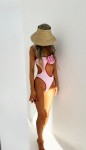 Zapinany z tyłu, bez miski, sznureczek odpinany na szyję.