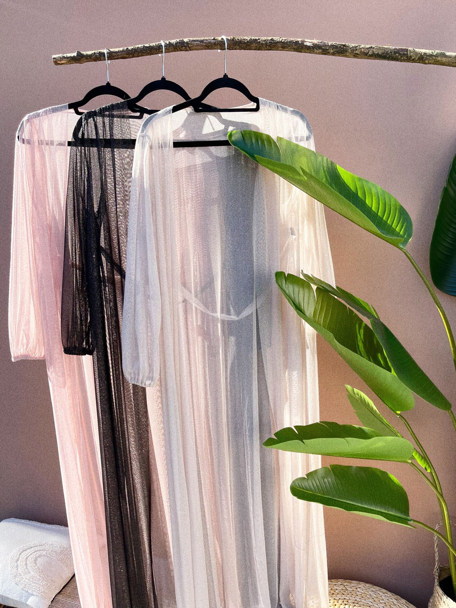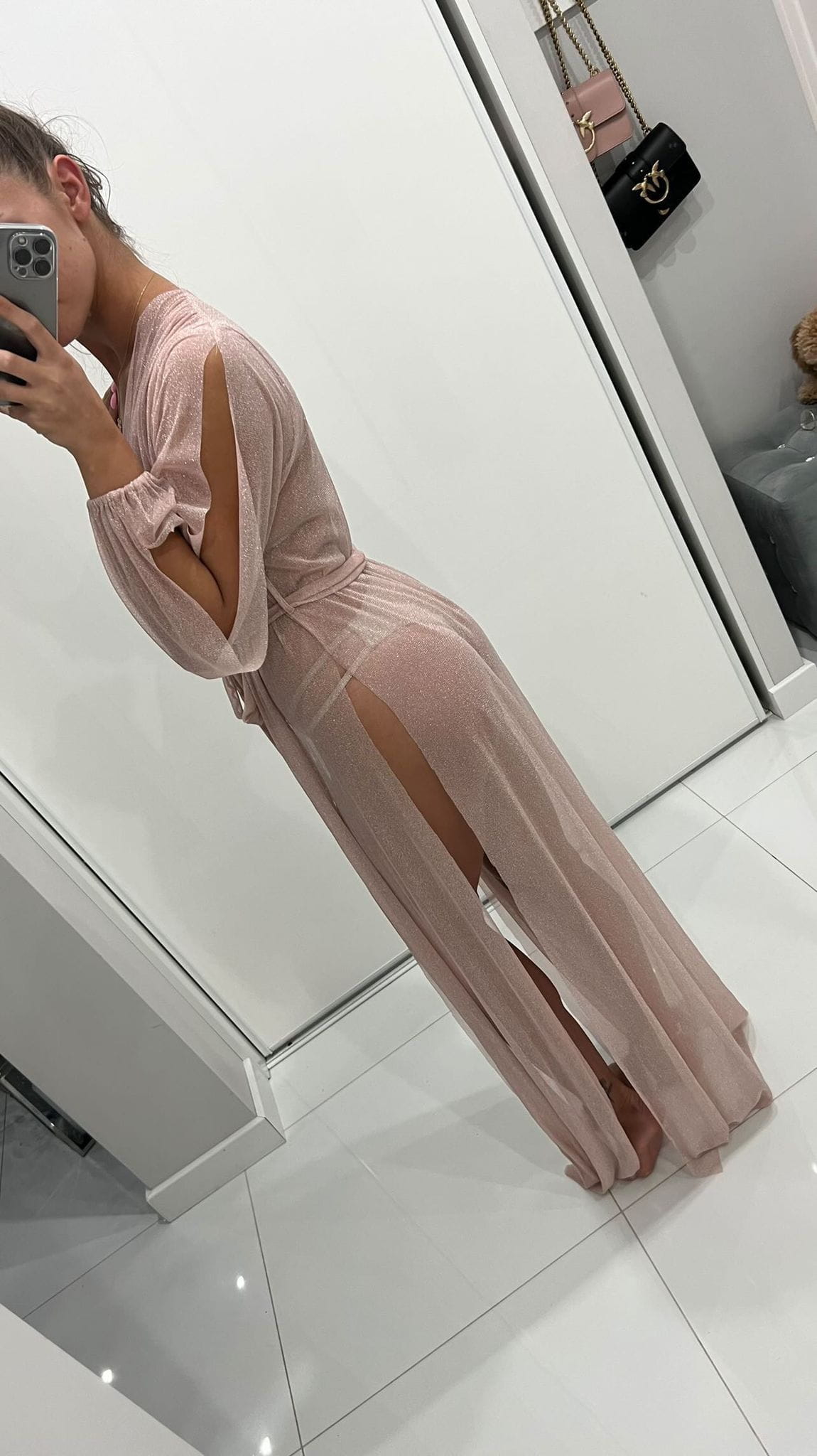 Pink Cinderella to długa narzutka plażowa z głębokimi rozporkami po bokach.