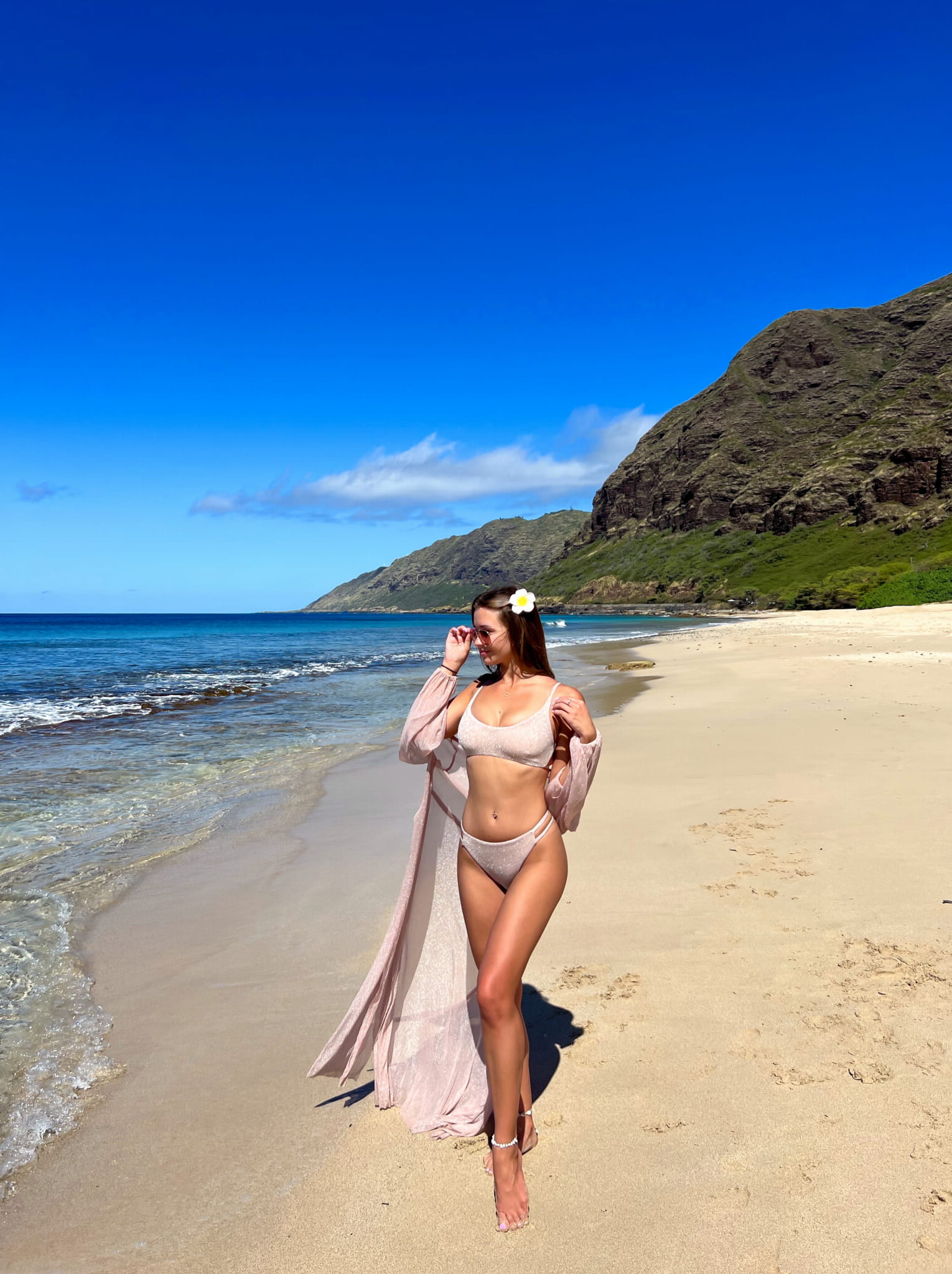 Wyjątkowo zwiewna i delikatna narzutka plażowa będzie świetnym uzupełnieniem do plażowej stylizacji.