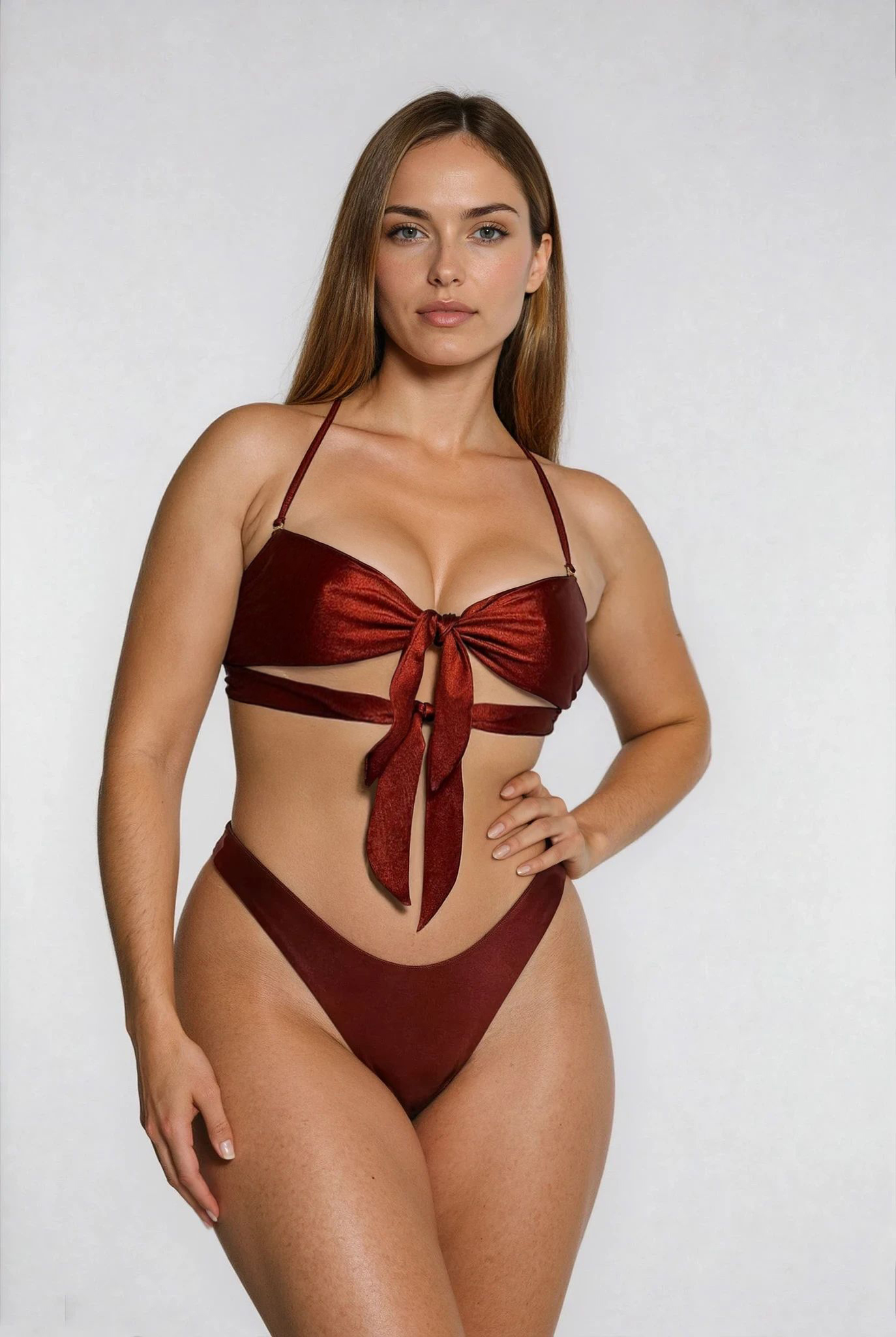 SHINY BROWN CAMELIA DÓŁ BIKINI
