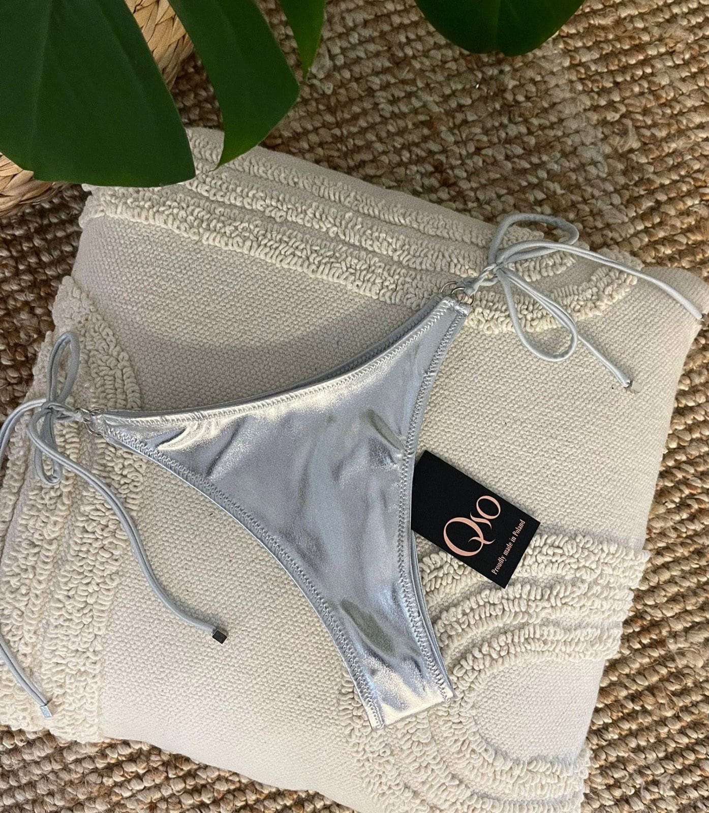 Model Metallic to nie tuzinkowe trójkąty uszyte z oryginalnego metalicznego materiału. Idealnie sprawdza się na małych biustach jak i tych większych. Miska push up z możliwością wyjęcia. Wiązanie na szyi i plecach pozwoli pięknie dopasować strój. Ponadczasowy klasyczny krój sprawdzi się na każdej sylwetce. Dół bikini wiązany na bokach.