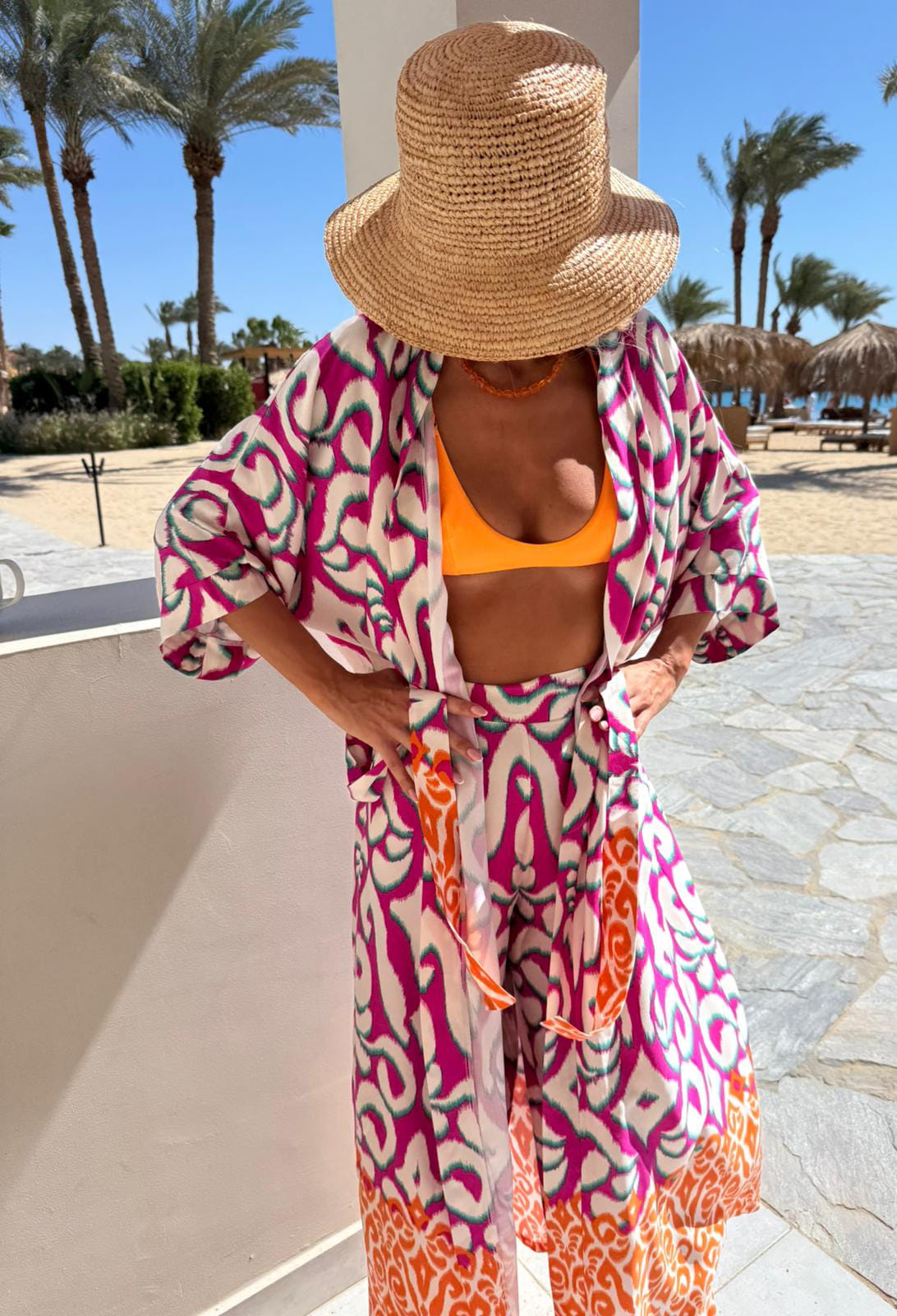 Kupiłam ten szlafroczek i spodnie. Bardzo przyjemny mięciutki materiał. Kolorek taki, że od razu poczułam wakacje!