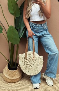 Torba idealna na plażę i na miasto z kieszonką w środku i zasuwana na suwak.