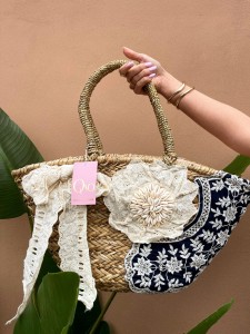 Duża torba plażowa wykonana z naturalnych materiałów (słoma), wnętrze len. Z wewnętrznym suwakiem i małą kieszonką.
